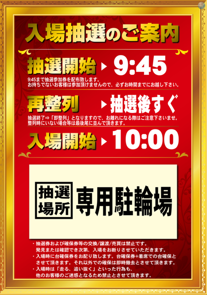1日は抽選30~70人ほど、全台というよりは機種イチや並びがメイン、良番もAタイプから埋まったりもします。