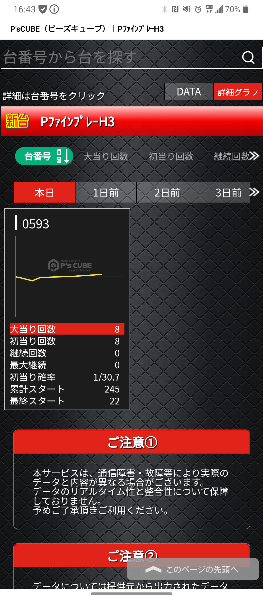 BIG確率1/270 REG確率 1/328 設定2.5程度 全国平均の割より悪いですね。