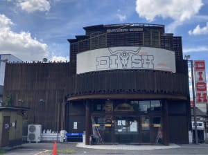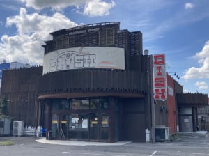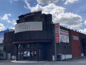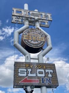 赤丸の日の目印は店の外にある旗が赤くDISHと書かれた旗になります。