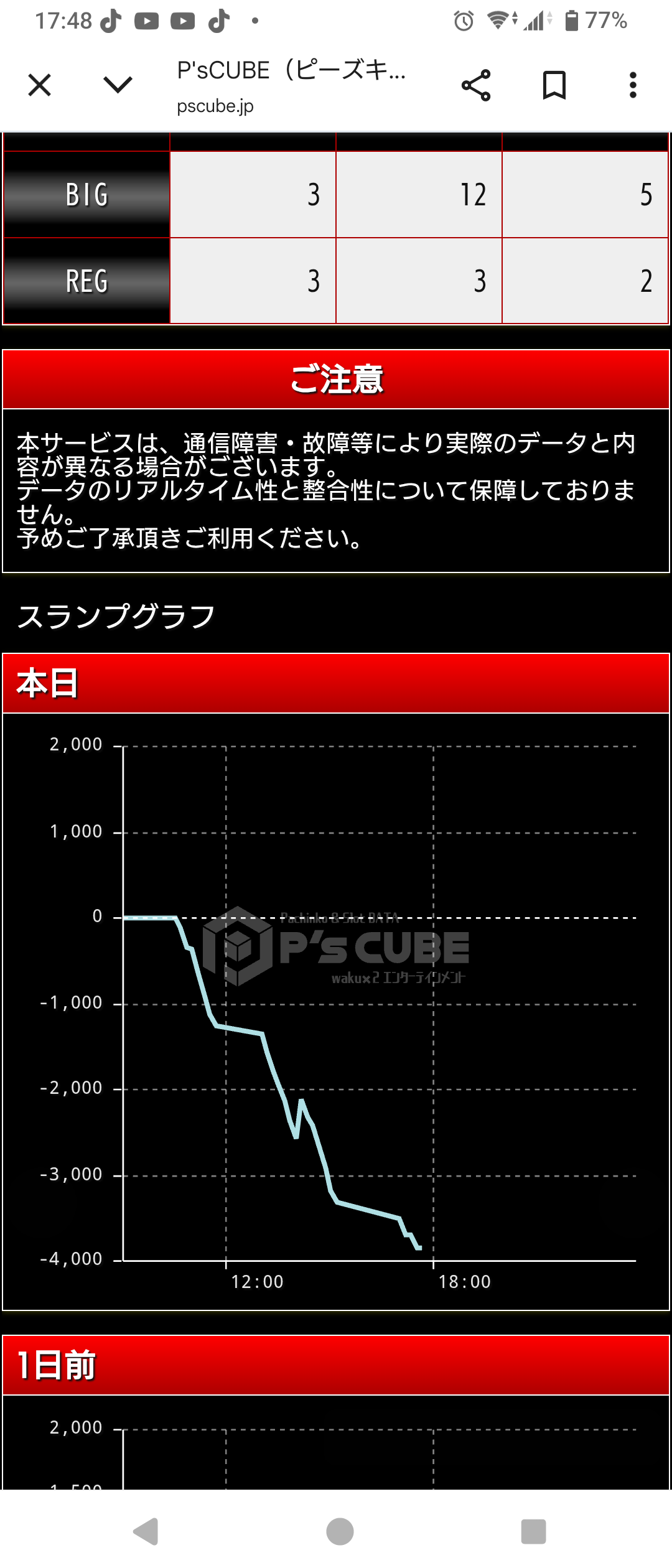 1日のイベント日でパチンコはボーダーorプラス1〜2程度の台がチラホラ。通常日はクソですね。