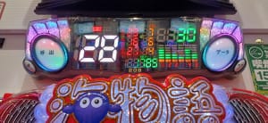 ジャグラー、スマスロ等の20スロコーナーは賑わっている。5スロは確認せず、4パチは終始ガラガラな感じであった。1パチは甘海コーナーがほぼ満席、その他バラエティーコーナーも大賑わいだった。今回は1パチで高須4500狙いと思ったが、激デジ真牙狼が遊タイムまで100辺りであったので打った、投資0.4Kで初当たり、5連ほどして約3000発獲得。ヘソは分かりやすくプラス、右のポケットも入らなくはない。移動