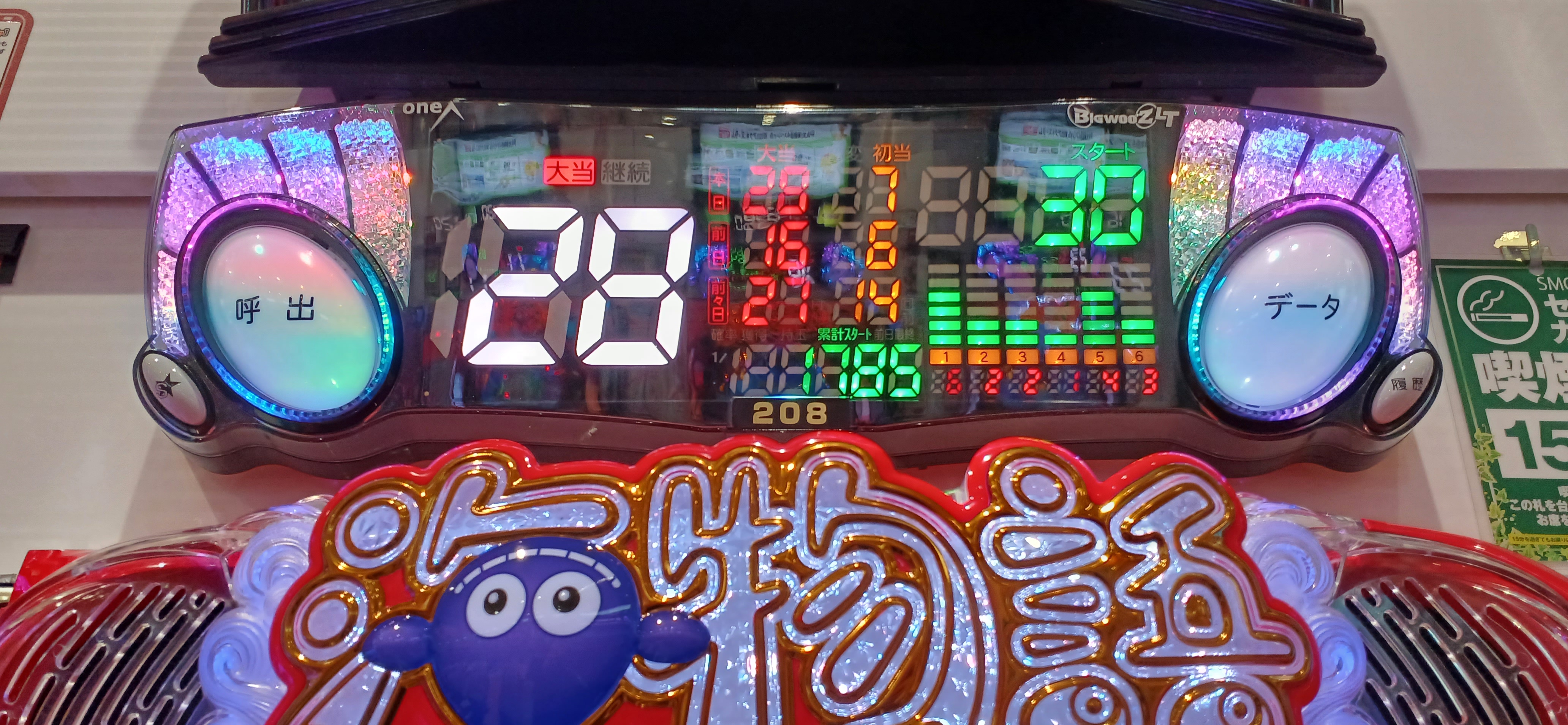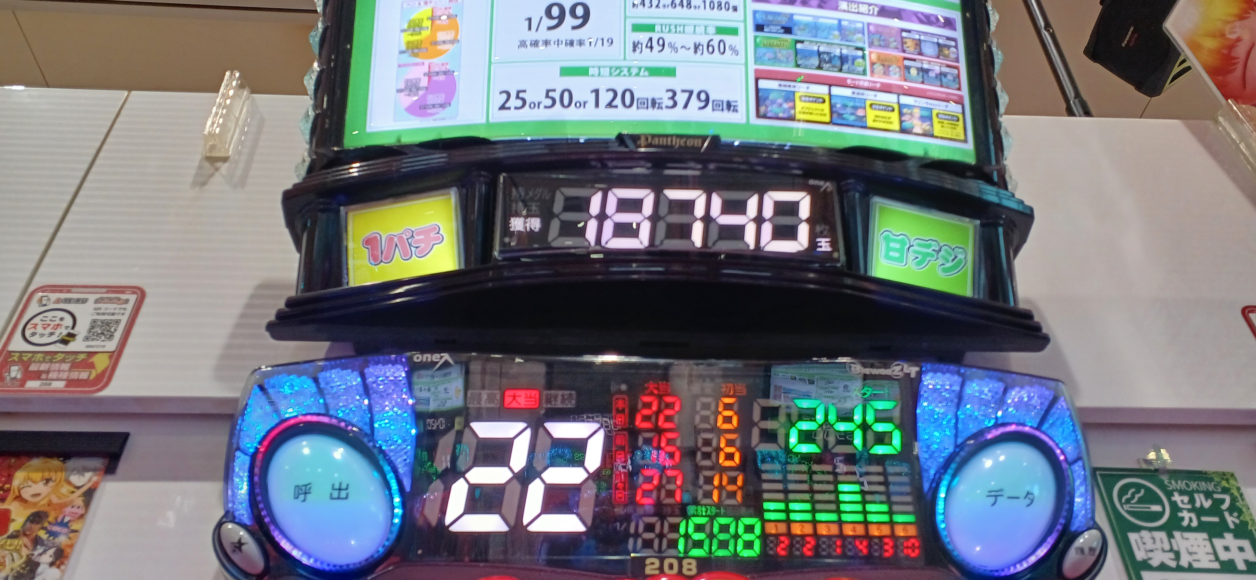 久々に行ったが、台の特殊な設置位置の感じや、大型巨大横ワイド液晶など全体的に変化無し。データカウンター分かりやすく設備も問題なし。