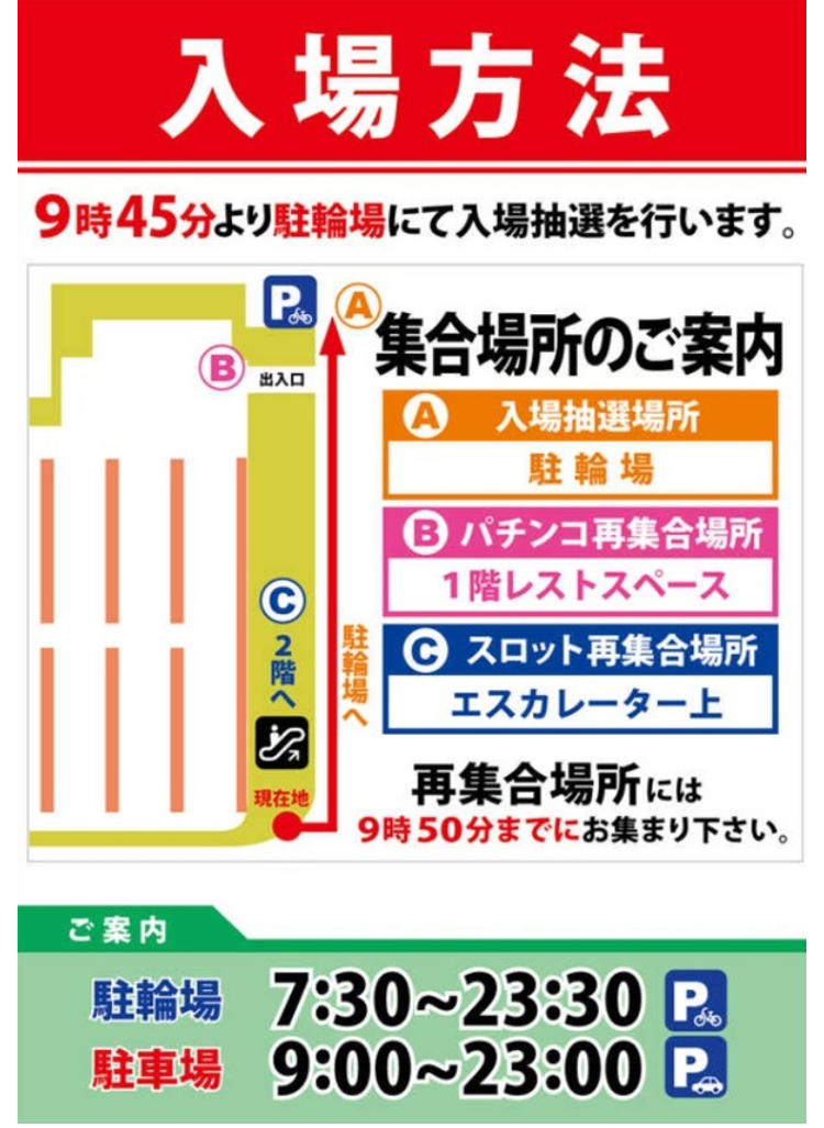 パチンコ再集合場所は1階レストスペース。