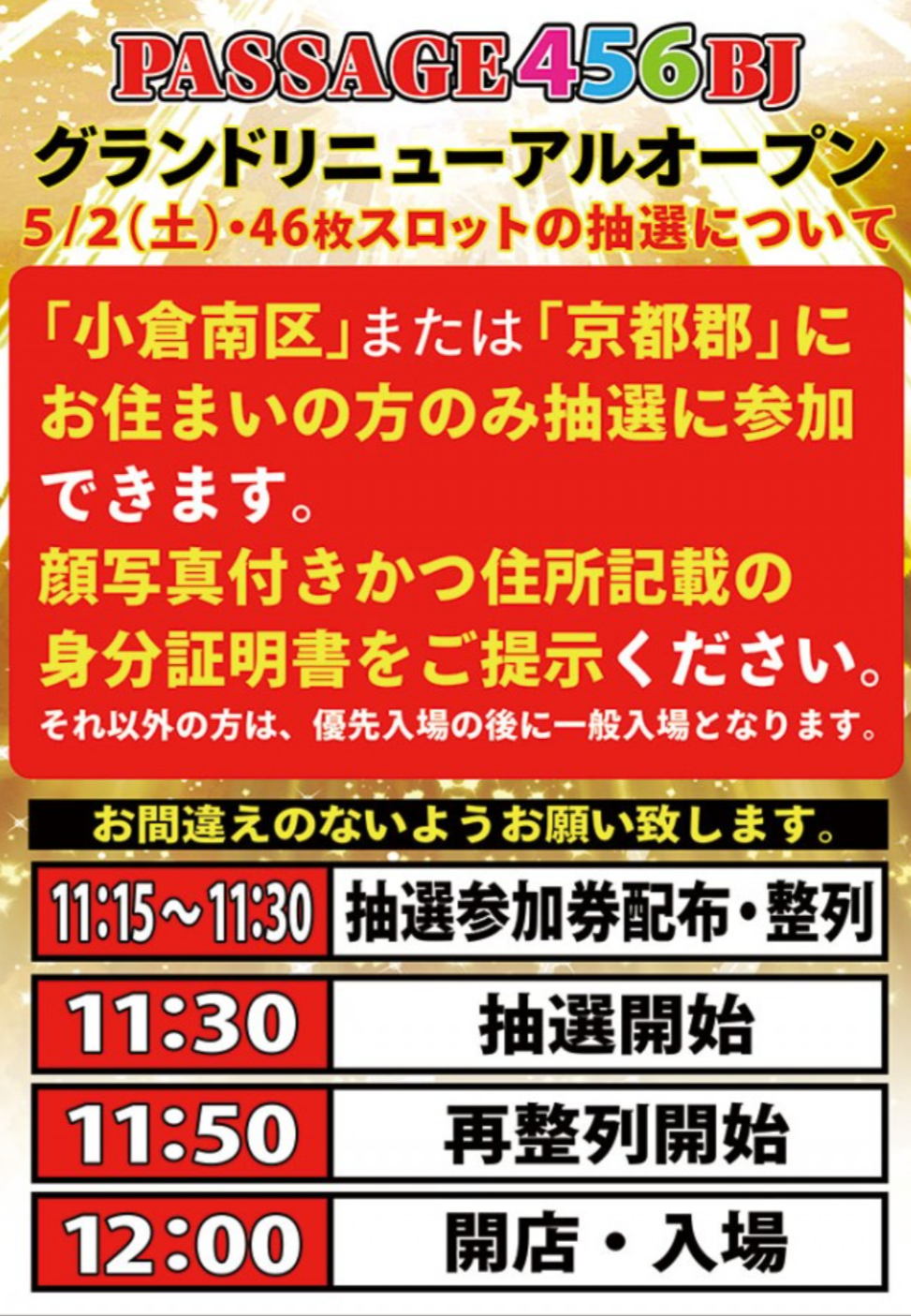 | 注意点 | ※グランド日スロット抽選、「小倉南区」「京都郡」住まいのみ。 |