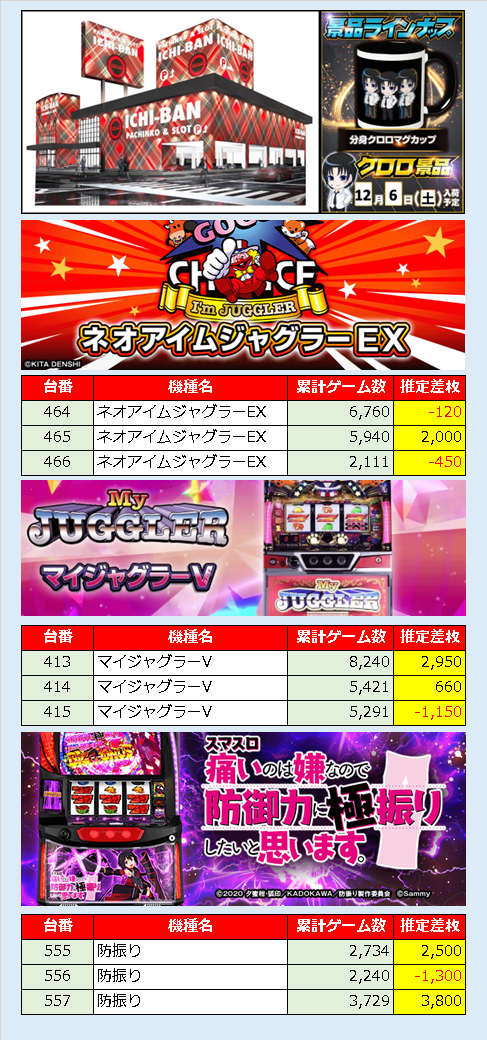 ネオアイムは1台厳しい展開になっていますが、数値的に足りているという確信があっての回転数かと思います。