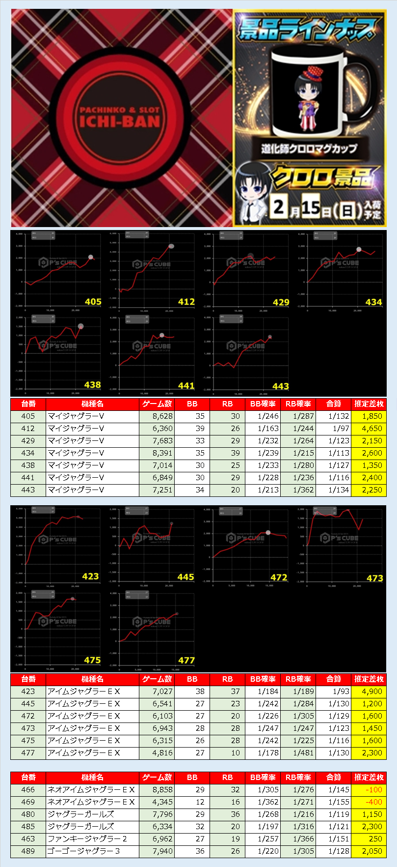 推し機種/ジャグを中心に狙い候補をきめていきましょ。