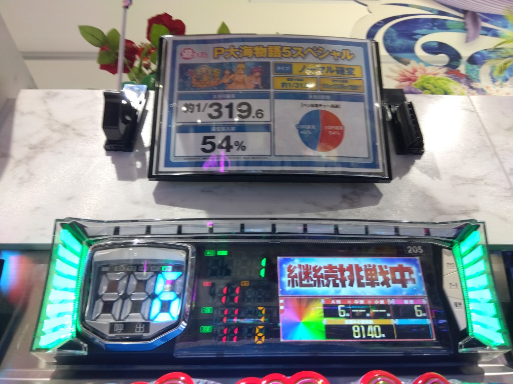 Pの稼働は7、8割程度エヴァ、ユニコーン等メイン機は埋まっているが大海は空き台が目立っていた。