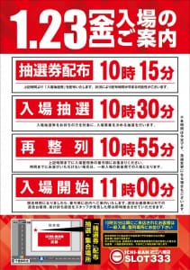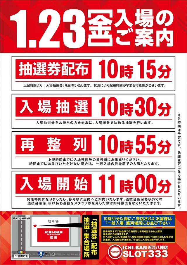 | 注意点 | 09:00 抽選参加券配布 ※先着369名で打ち切り |
