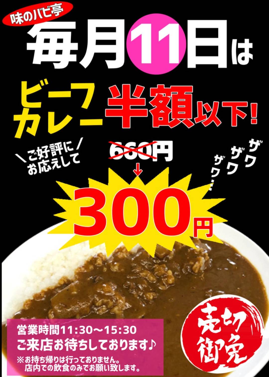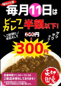 毎月11日、ビーフカレー半額以下、
