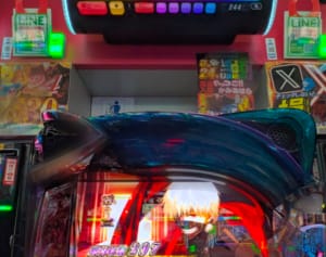 画像にもある通り、外観は工事中。店内もレトロっぽい雰囲気ですが、打つには困らない肘掛けあるし、データも必要最低限。大きな喫煙所もあり、休憩所もあります。そこそこな快適空間です。
