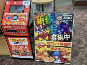 景品カウンターを向かって、左手側の出入口を出て、そこから左手に歩いた左側にあります。