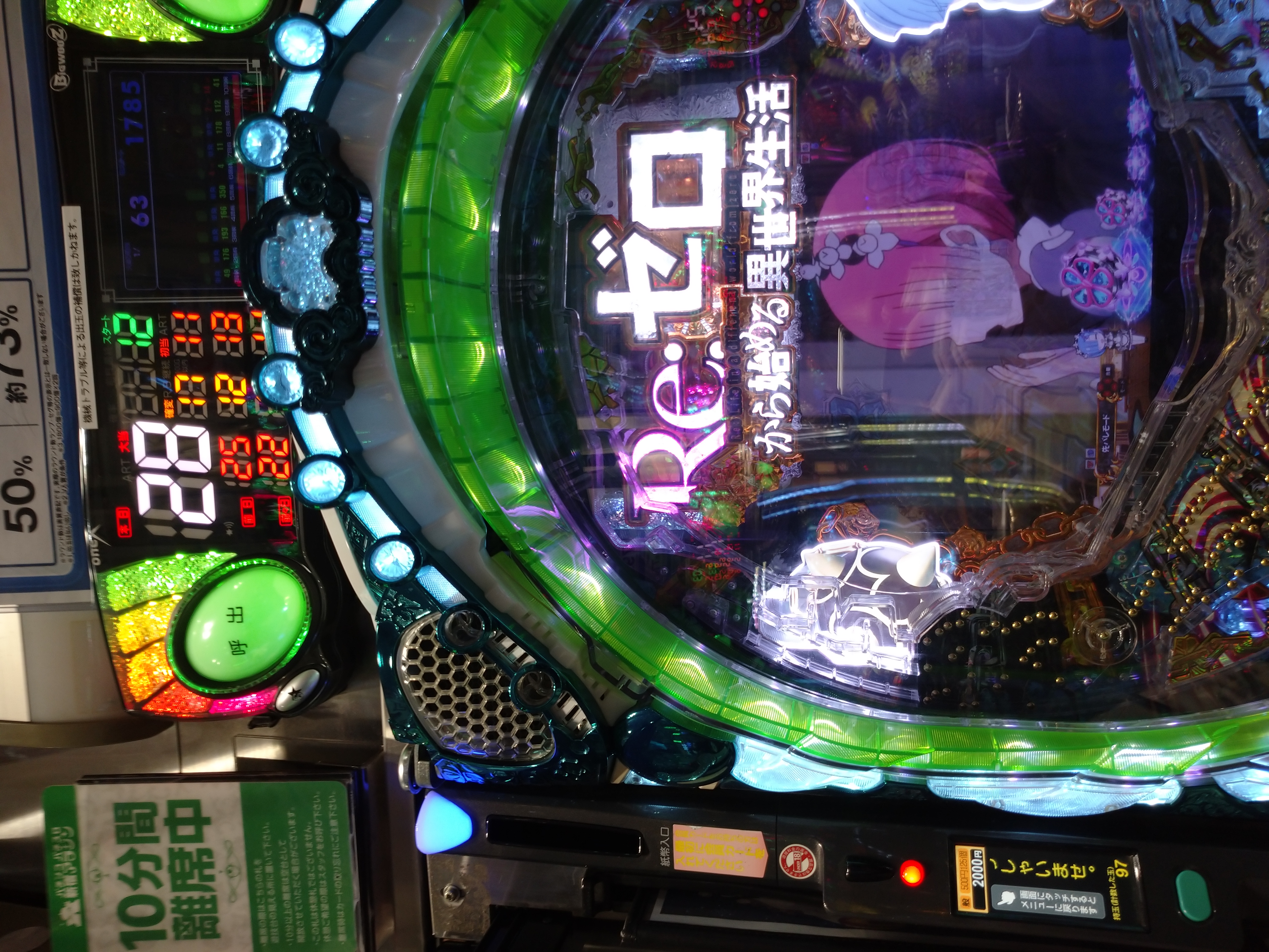 4500円でリングで当たり2800発くらいになったので、出玉を持ってリゼロに移動。