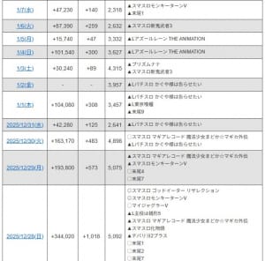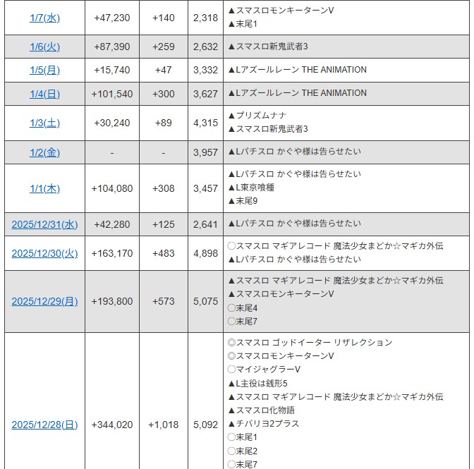 その他LT機とアグネスを中心にアケており、12/27 1/1 ではパチンコ差玉日本一を達成。