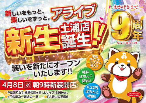 1. 4/8の新装開店より「ALIVE土浦店」に屋号変更