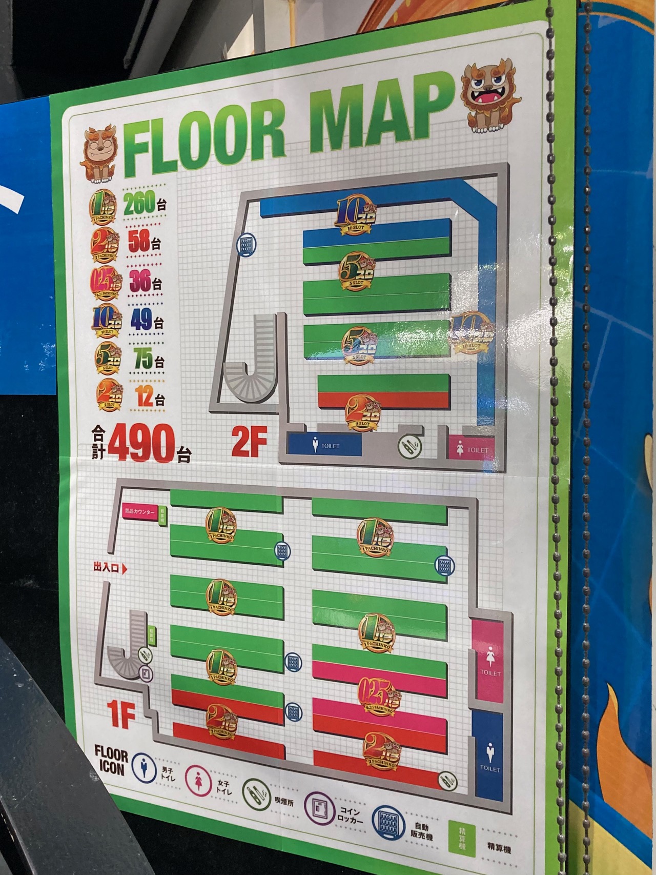 2階にあるスロットコーナーではメインであろうジャグラー&ハナハナは何台か履歴を確認しましたが、ほぼ1or2だと思います。まれに5.6っぽい履歴もありますが台数が少ないため勝てる設定は入れてないに等しいです。