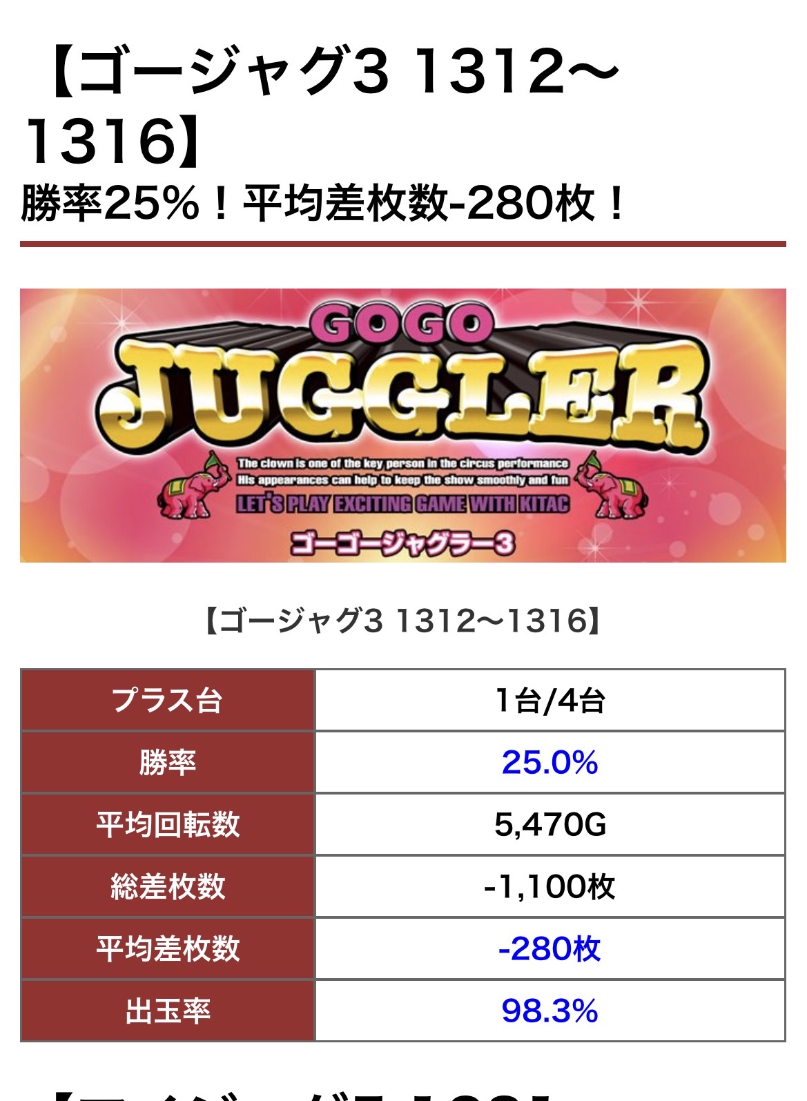 各機種戦えるような感じになっており、ゴージャグは全体的にベース高いと感じました。
