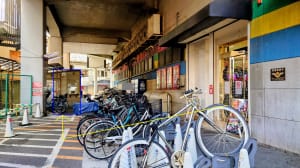問題は店舗右サイドにある駐輪場…多くの人が近所から自転車で来ているのだろうが、遊技してる人でも1時間を超すと有料200円?