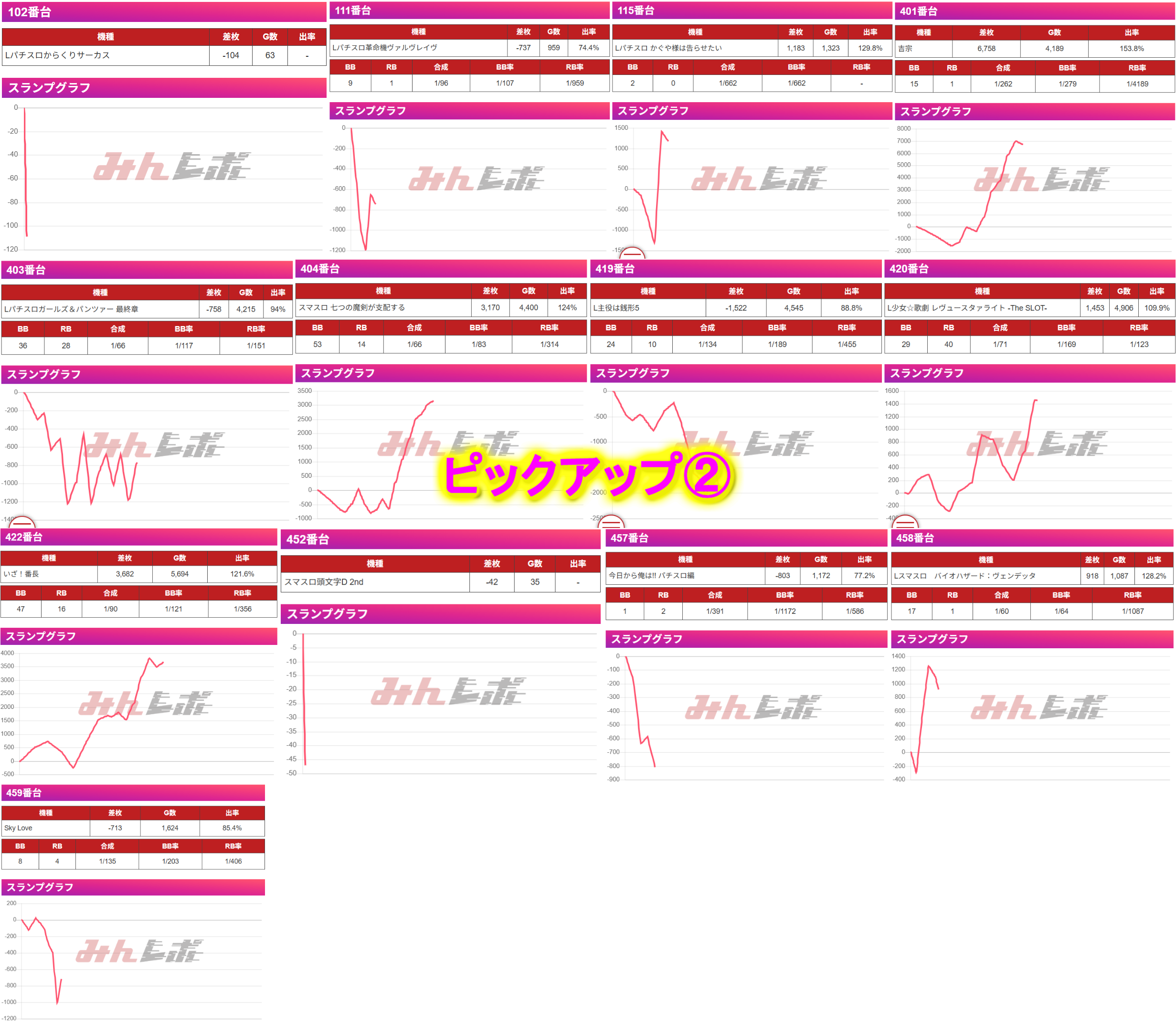 直近の⑦の日は仕掛けに変化が見受けられ予測不明ではあるものの、裏を返せばどこからでもチャンスのある状況なので次回以降も幅広く面白い仕掛けに期待できそうです。