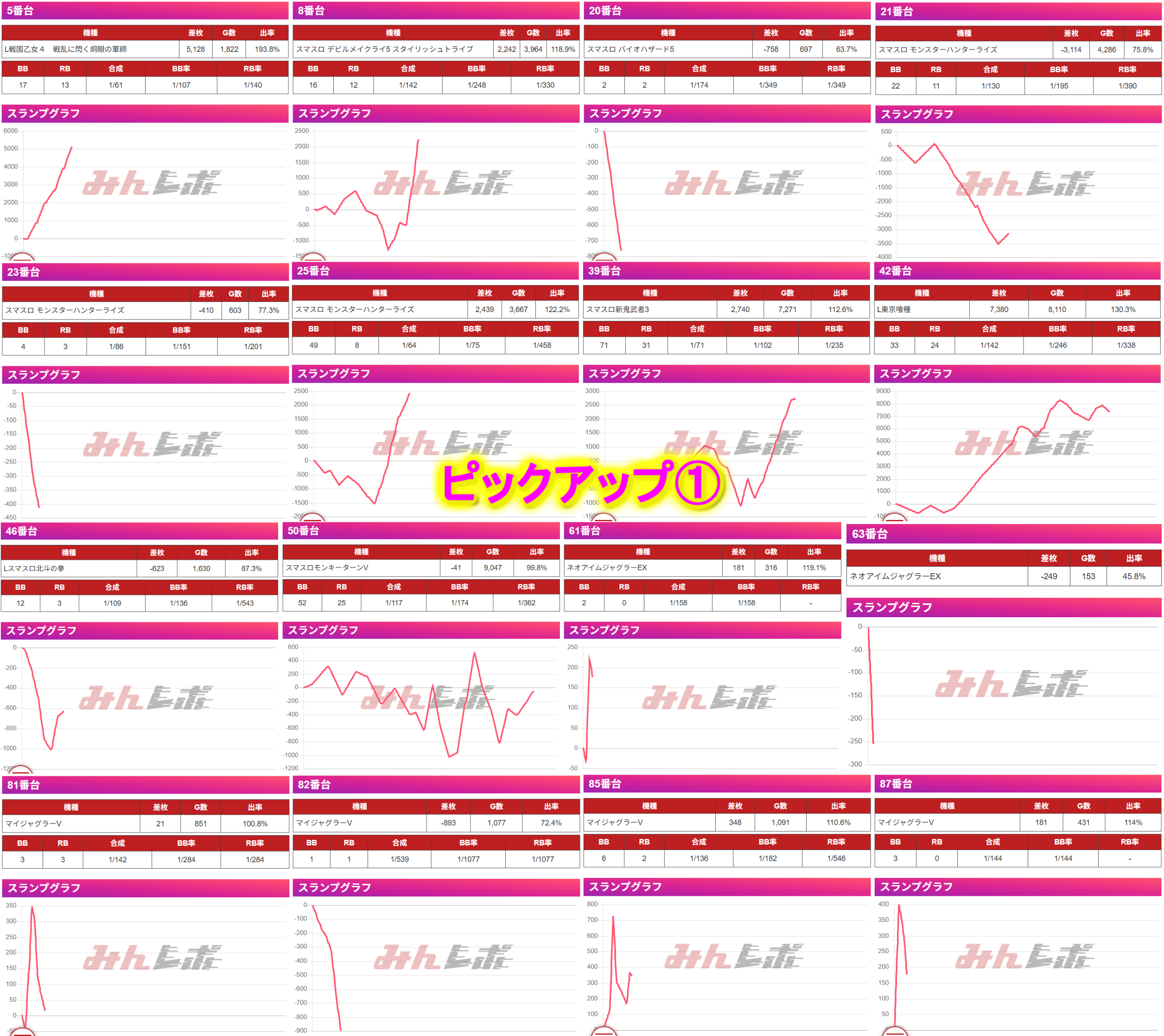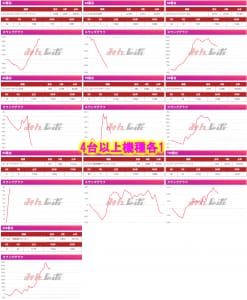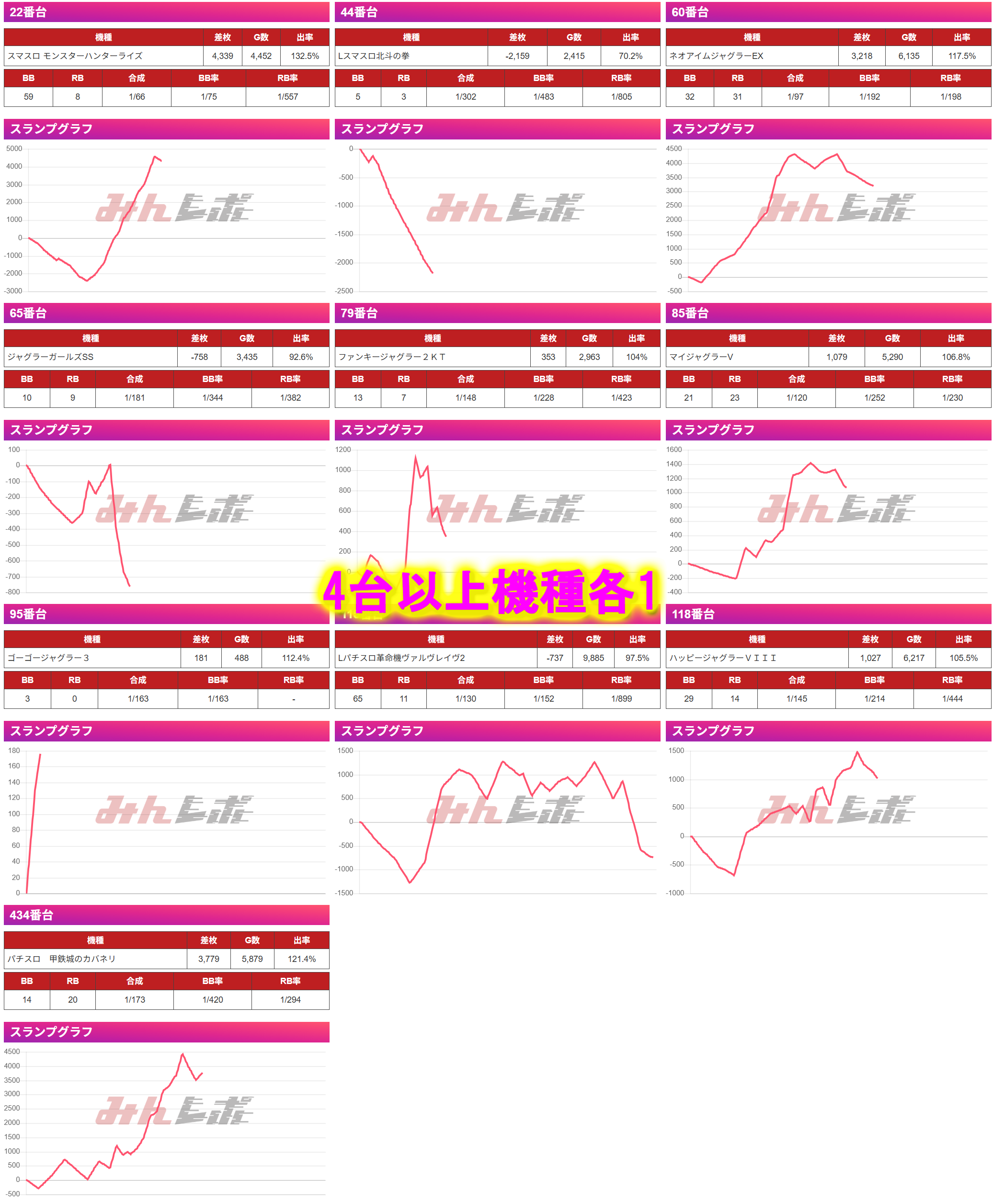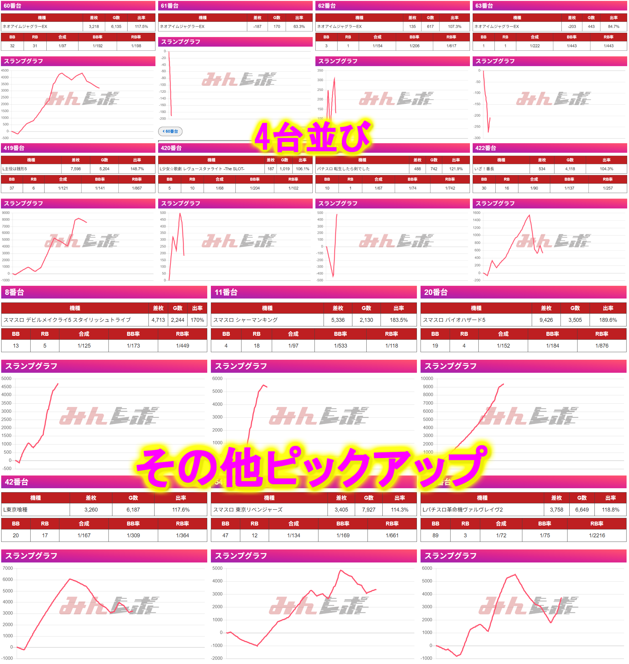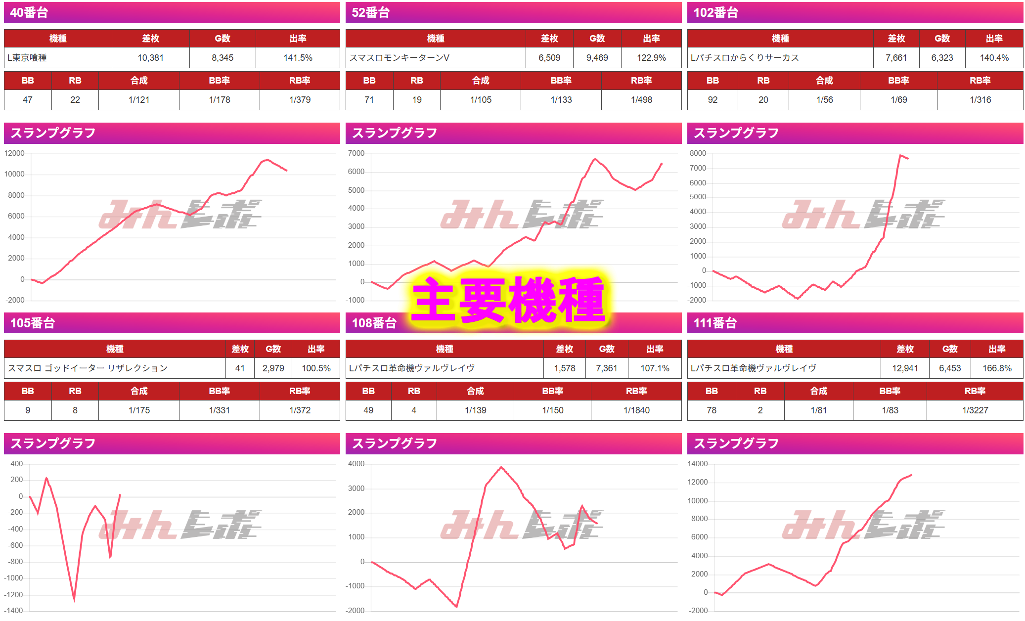 その他にもマイジャグ5、カバネリ、マギレコなど人気機種を絡めた4台並びや、1/2以上の仕掛けと思われる主要機種も複数存在したと思われ「月イチ周年日」らしい良状況になっていたと感じますし今後も要注目です!
