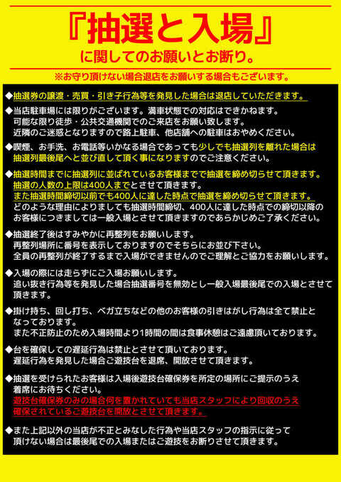 ●スロット•パチンコは普段より客層は…新台入れ替えも有り