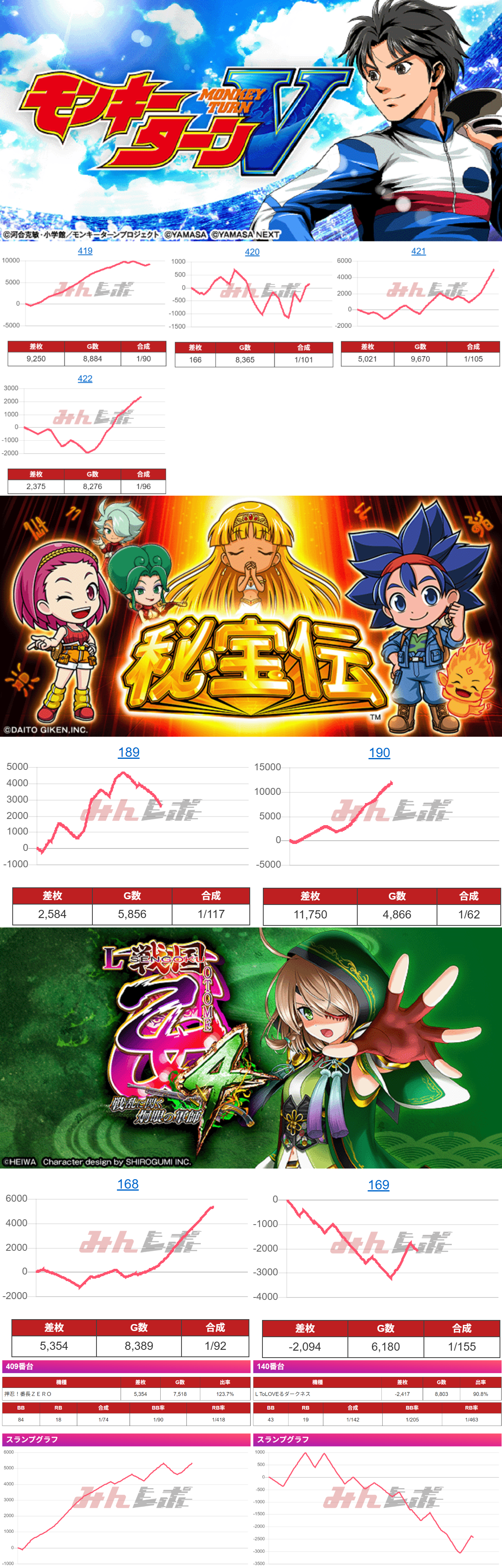 並びの観点でみると麻雀物語/モンキーの4台並びが好調。