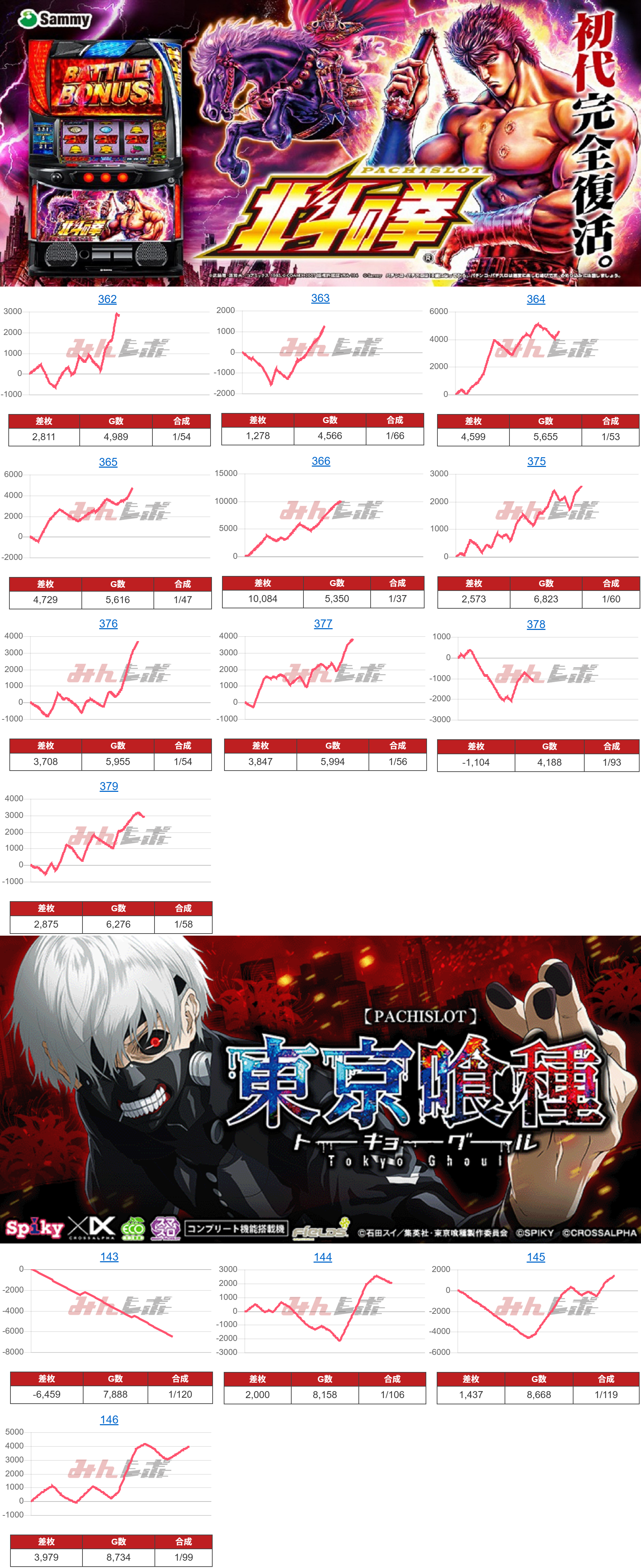 北斗/ヴ/ゴジラ/かぐや/バイオ5などから多数の好調台が出現。