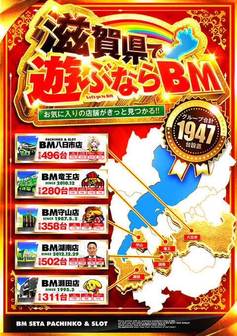 但し車で10分少し走った先には強力な競合店「GRAND G-ONE甲賀水口店」「エンターテイメントオメガ湖南」の存在があり、こちらも特定日が「1の付く日」で重なる。
