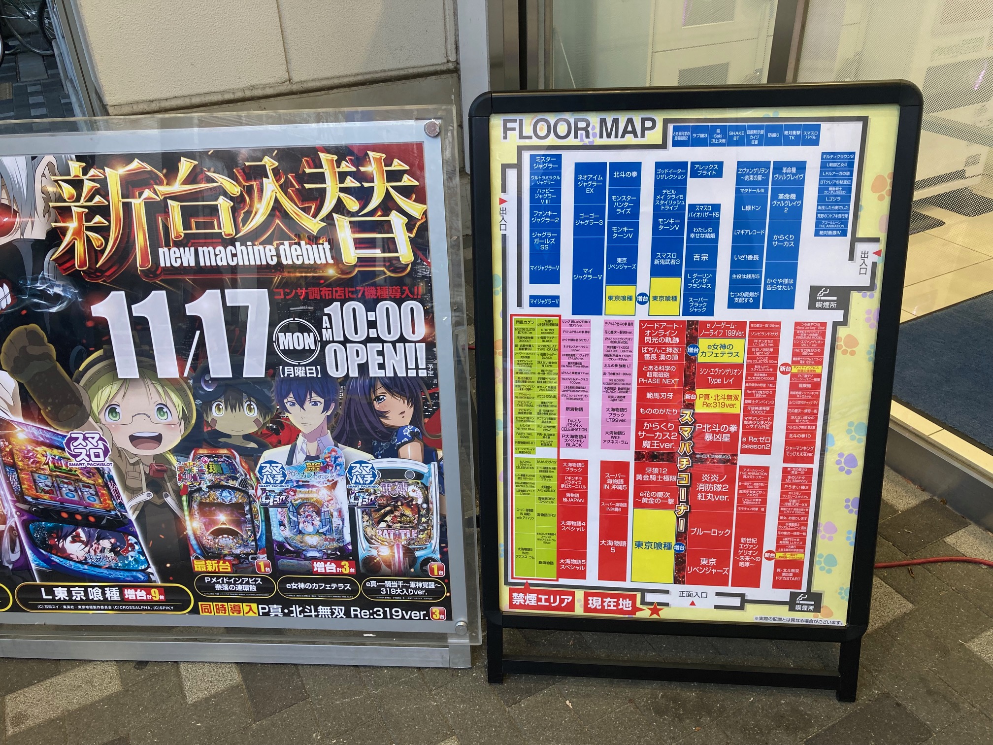店内練り歩き、空いてる台且つ自分の打てる機種で小手調べ。
