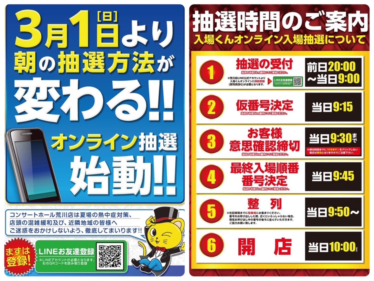抽選受付 前日20:00~当日9:00