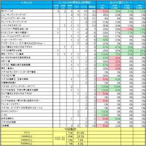 10台以上の機種全体では、計89台で、プラスの台は35台。勝率は39%と低かったです。