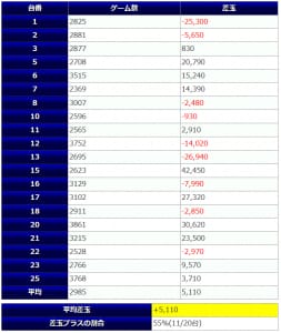 平均7,400Gの高稼働で、1台平均+1,828枚と、信憑性の高い結果を残してくれました。
