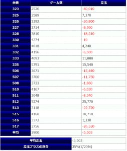 | 台あたりの平均差玉 | -1,180玉 |