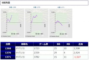 とはいえ、+1,000枚弱の獲得は幾つか見られますし、12台中、11台がプラス差枚を残しているところからも状況の良さは伝わってくるような結果にはなっています。