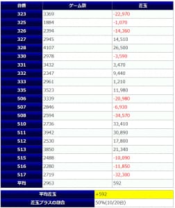 2機種共に上記以外の複数の万発オーバーが炸裂していますが、残念ながら両機種共にマイナス着地となっています。