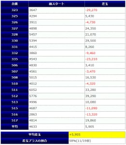・P&S共に大きな差玉と差枚が複数見られ、優秀な結果数値を収めました。等価営業にも拘わらず、このクオリティは素晴らしいと判断できますので、☆5の評価にさせていただきたいと思います。