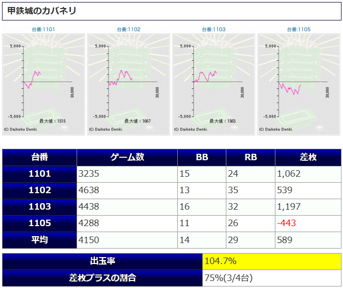 平均稼働4,473回転と、しっかり打ち込まれ、ユーザー側プラスとなっているので、状況が良好であった事が推し量れます。