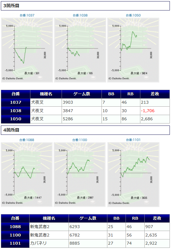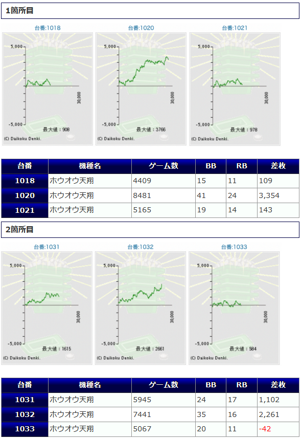 箇所での盛り上がりは、殆どがプラス差枚となり、+3,000枚オーバーが複数見られている①箇所目が際立っていた印象ですね。新旧AT機での構成ながら抜群の安定感を見せつけてくれました。