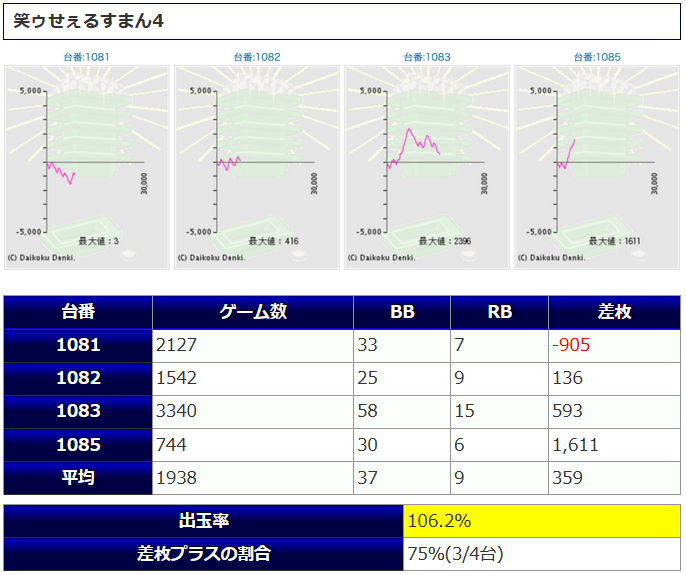 | 台あたりの平均差玉 | -1,180玉 |