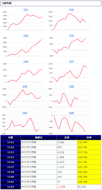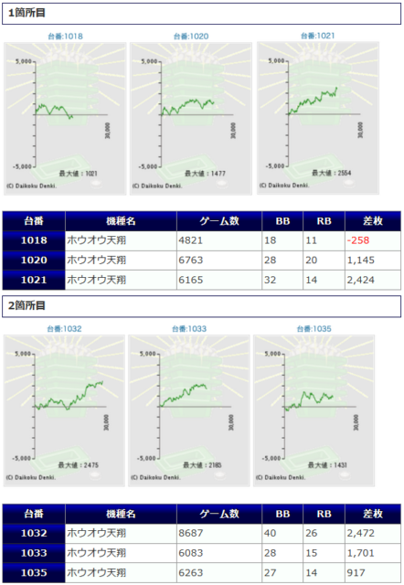 ノーマルタイプである「鳳凰天翔」は、終日の打ち込みは見られませんでしたが、3台並んでプラス差枚に仕上がっている箇所があり、中身にある程度の説得力はある仕上がりになっている印象です。
