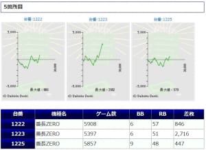 3台共にプラスで仕上がり、平均稼働も5,720Gとまずまずといったところでしたね。