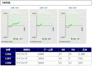 1台6,974G粘られていたようですが、イマイチ伸び悩んでしまい+682枚で着地。出玉感も薄かった事から仕掛けと認識されず、他2台は乏しい稼働で埋もれてしまったように見受けられますね。