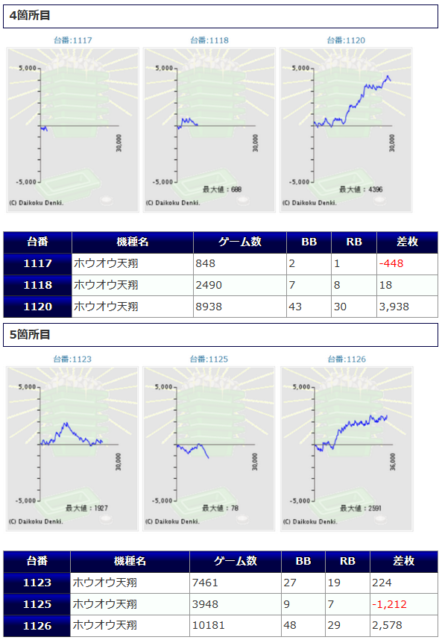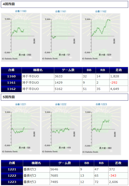 残りの「チバリヨ・沖ドキDUO」箇所は、疎らな稼働ながらも+5,000枚以上の尖った差枚も確認され、鳳凰天翔と同様に盛り上がっていたと思われます。