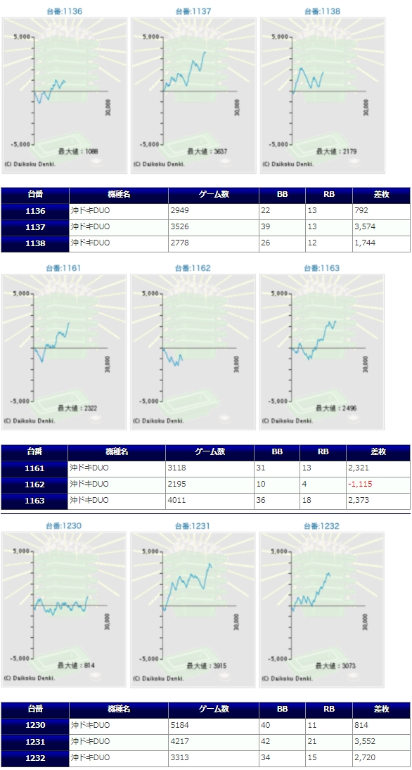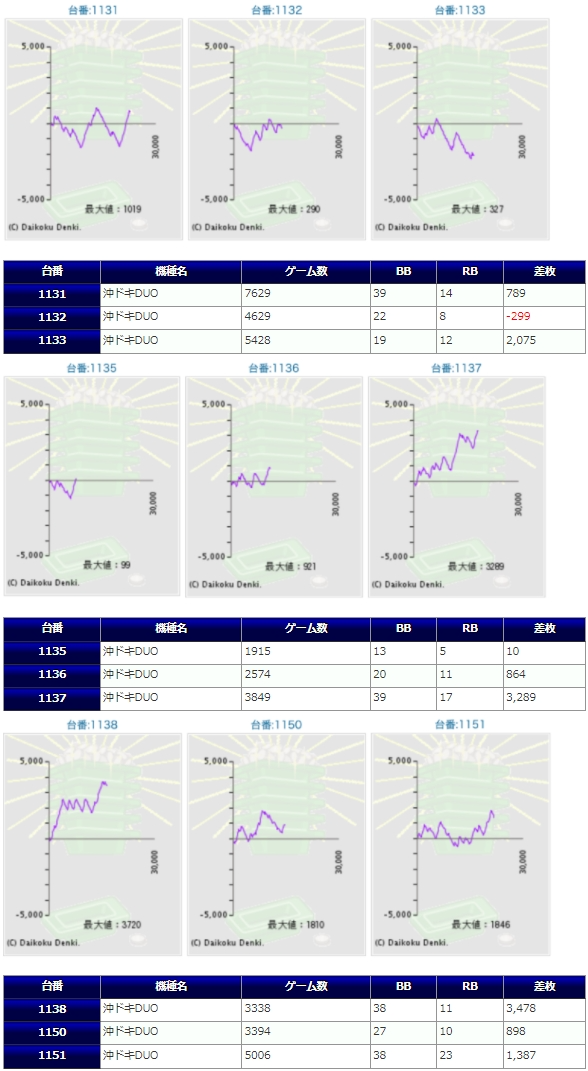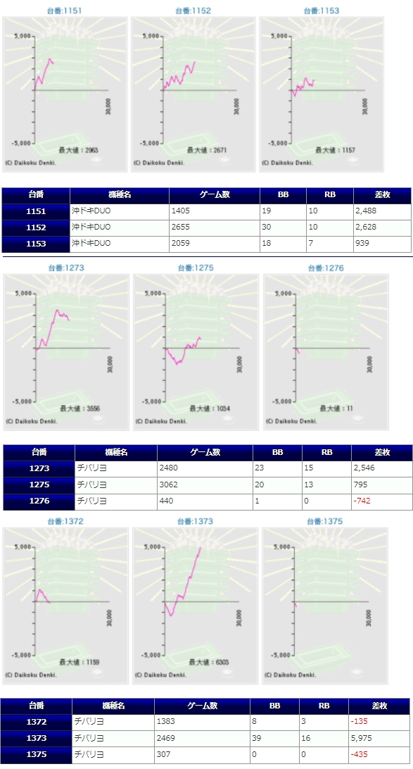 以前から沖ドキの配分比率が非常に高いホールでしたが、現在はチバリヨとやはり同系統での配分であり、その平均稼働が他のホールと比べても高く、同店ユーザーには求められ、好まれる配分とは言えそう。