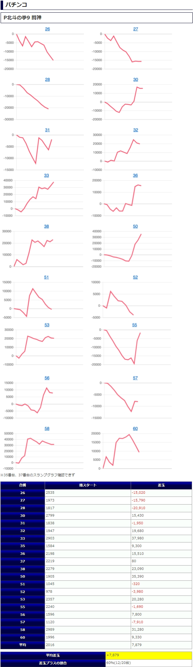 北斗の拳9からは平均G数2352Gの高稼働であいかわらず状況は良かったようですが、今回は残念乍ら下振れが目立ち、平均-3225枚とマイナス着地。