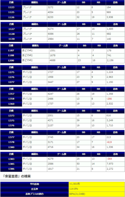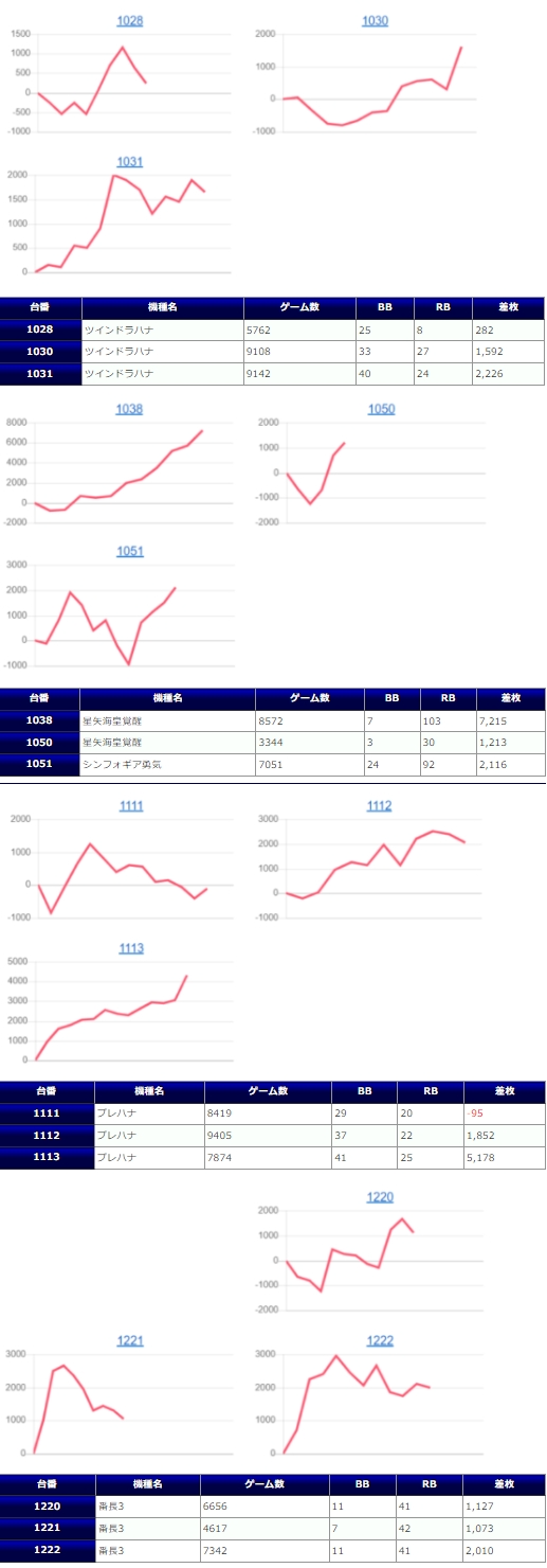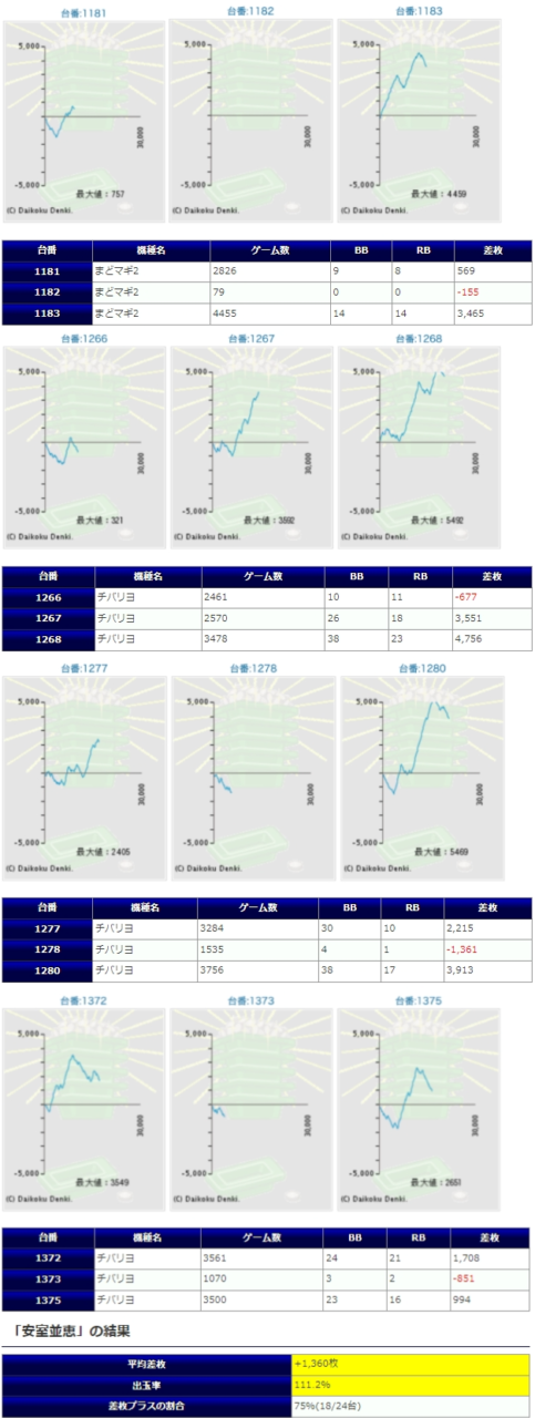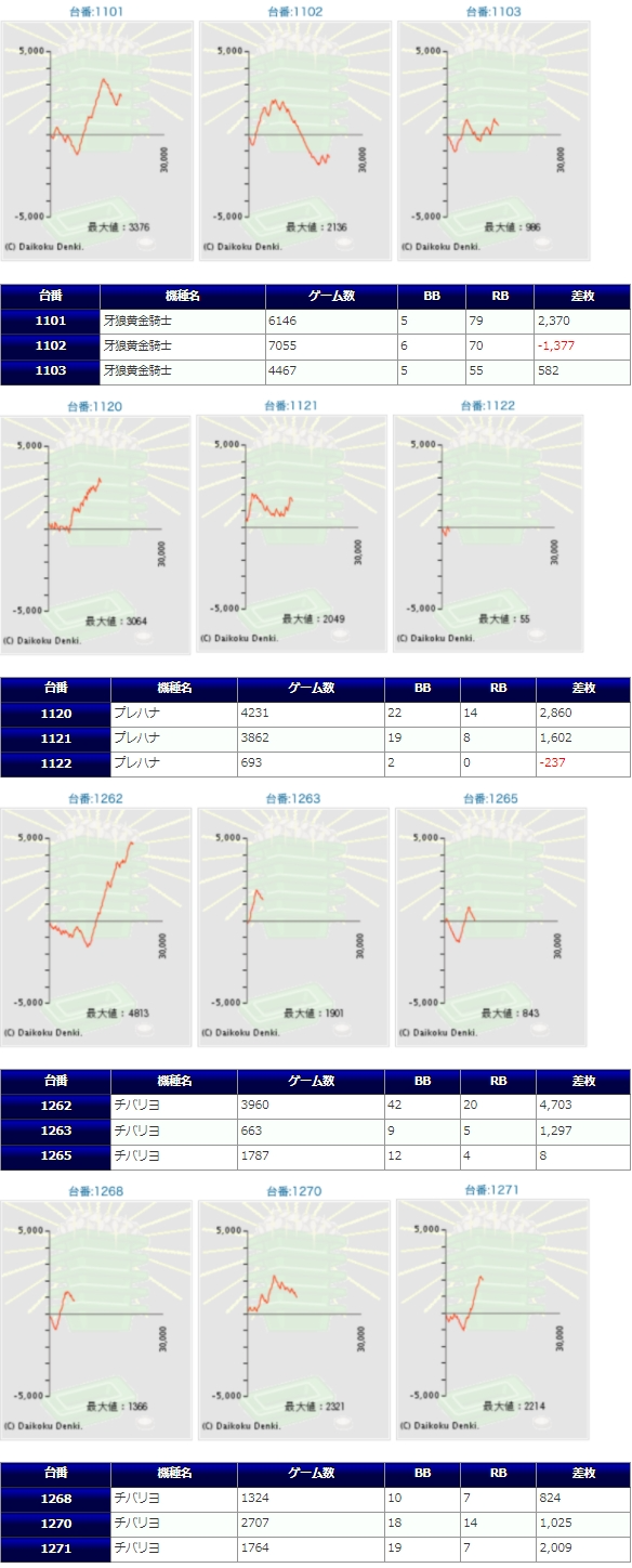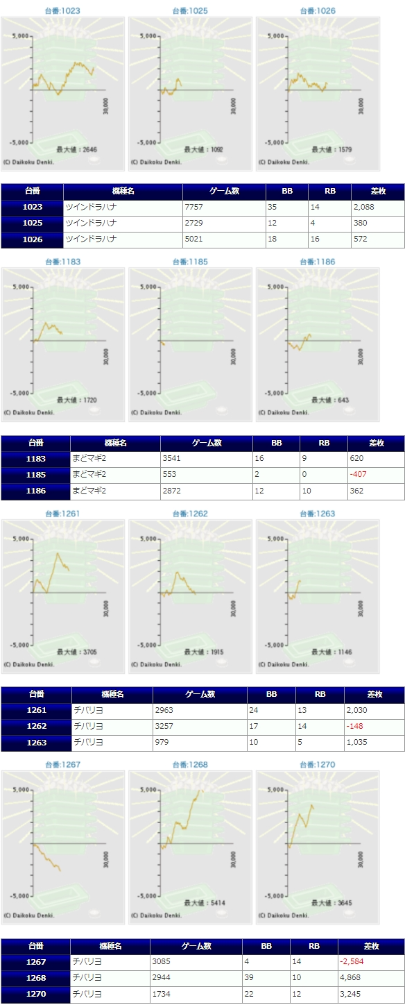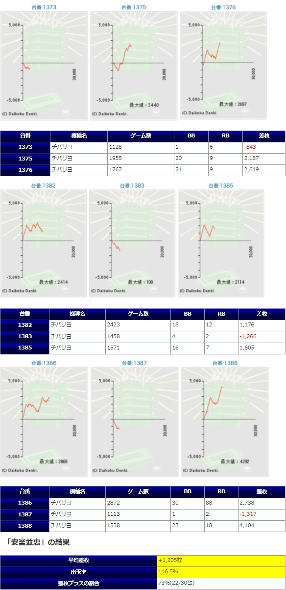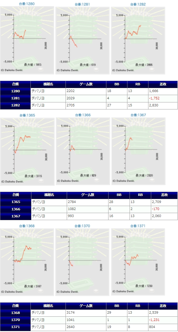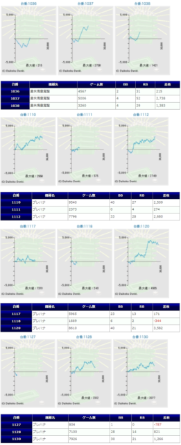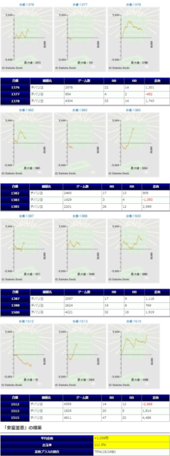引き続き5箇所が「チバリヨ」という構成ながら、今回は12/15台のプラス、勝率80%を記録しており、いくら「並び系」という仕掛け頼りでくるユーザーには不利な構成、配分とはいえ、ここまで結果を出してしまうと機種単位で状況の良さをアピール出来てしまう事で一定の認知には至るとして評価せざるを得ないでしょう。