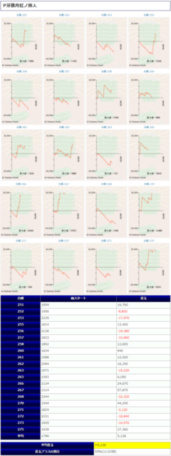 「バカボン」こそ残念ながら大きくマイナスにはなってしまいましたが、計20台で用意されていた「牙狼」が【平均差玉+5,126:勝率55%(11/20台)】と凄まじく優秀な結果になっていますので、これだけ荒い機種でしっかり結果を残せた点は評価できるでしょう。