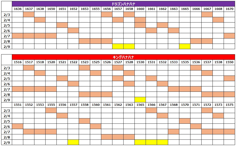 開催2日目の内容を見てみるとキングハナハナが手厚い内容となっており、合計42台の【⑥】が存在していたと思われます。