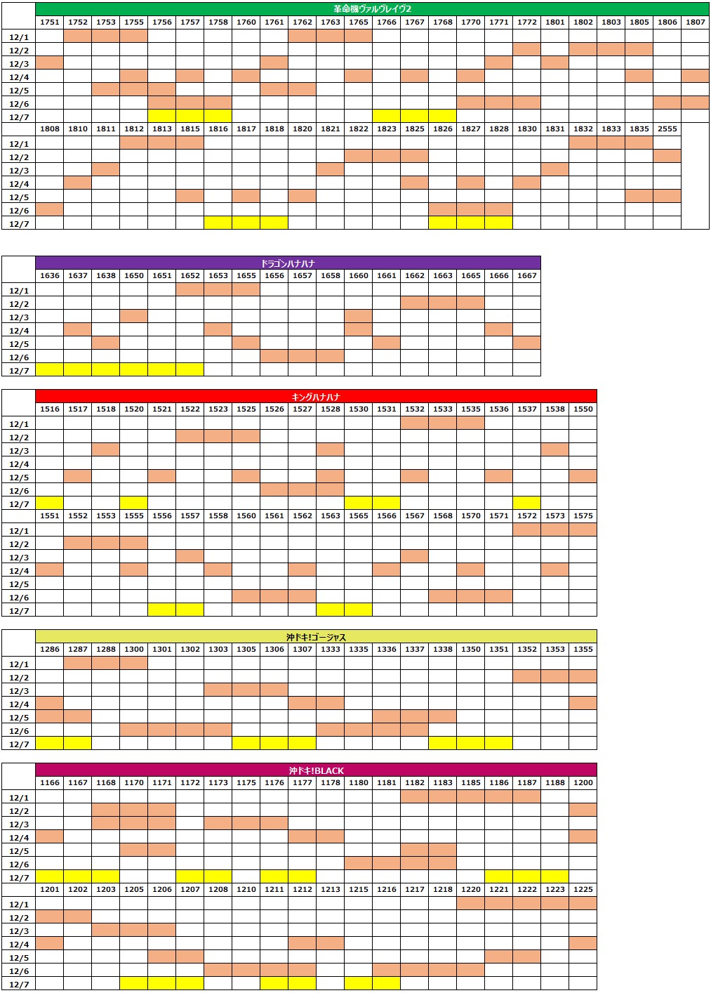 開催3日目の内容を見てみると想定通り各機種に仕掛けがあり、合計28台の【⑥】が存在していたと思われます。
