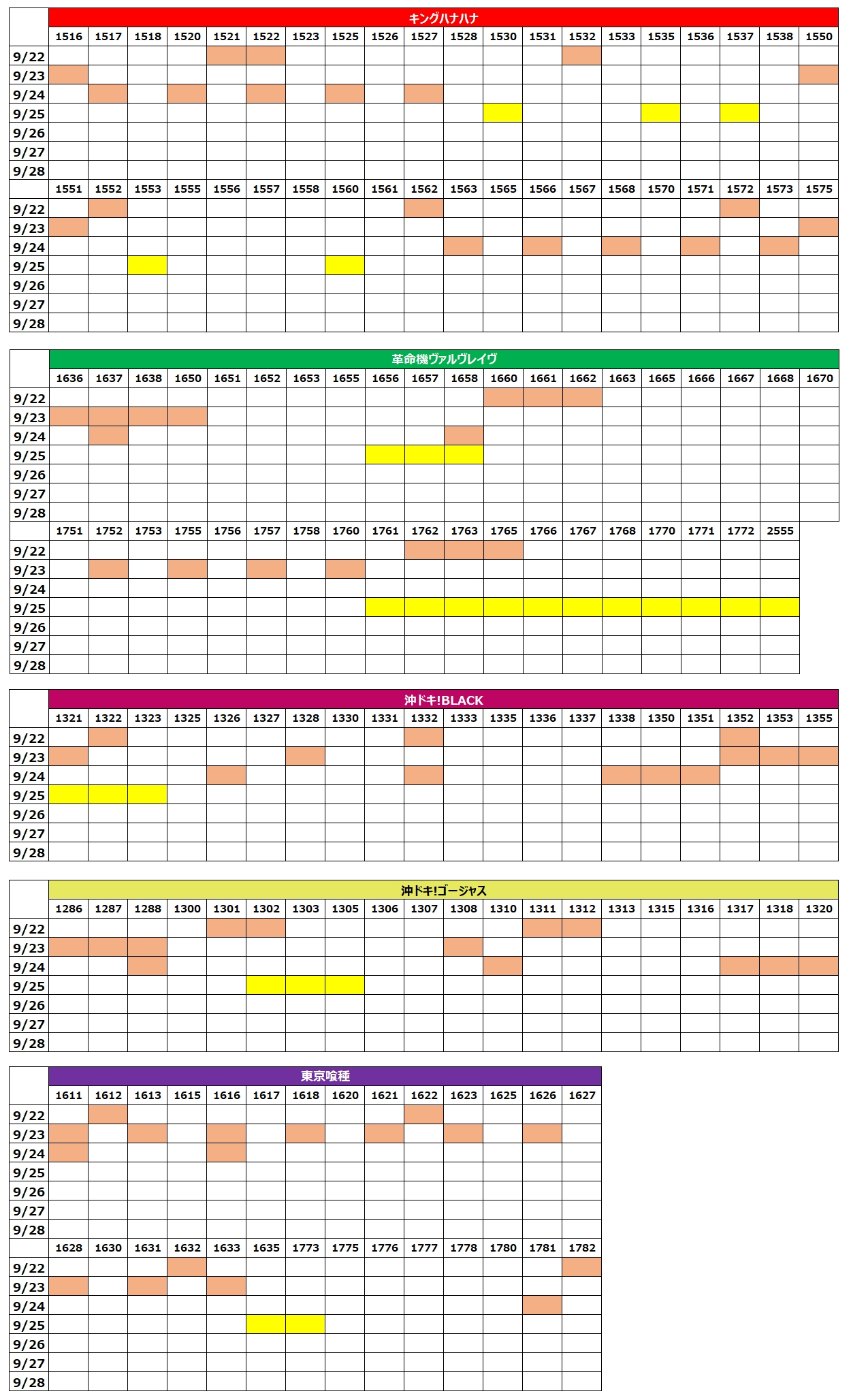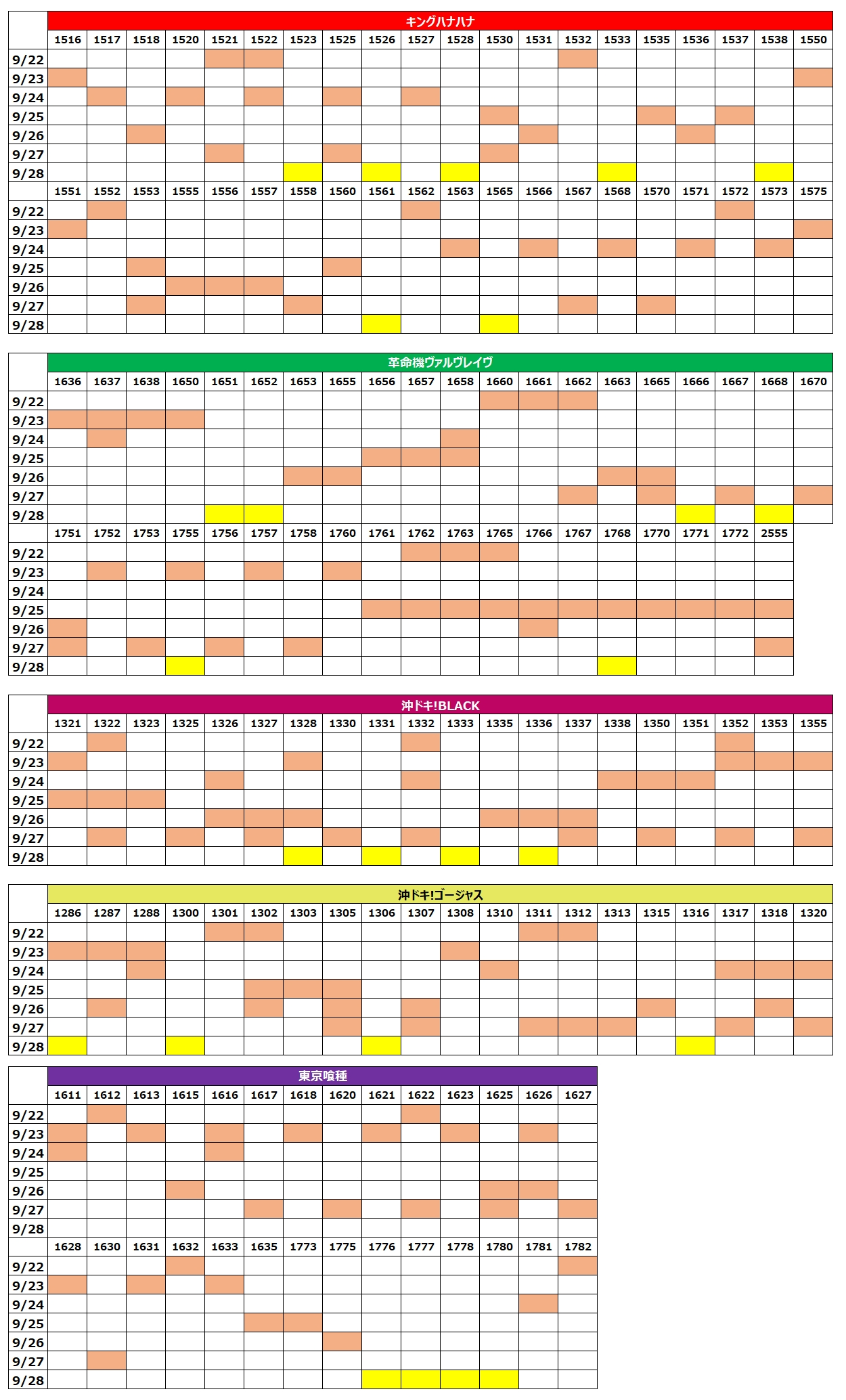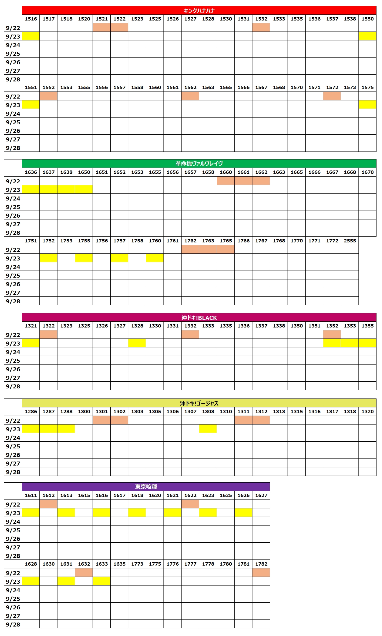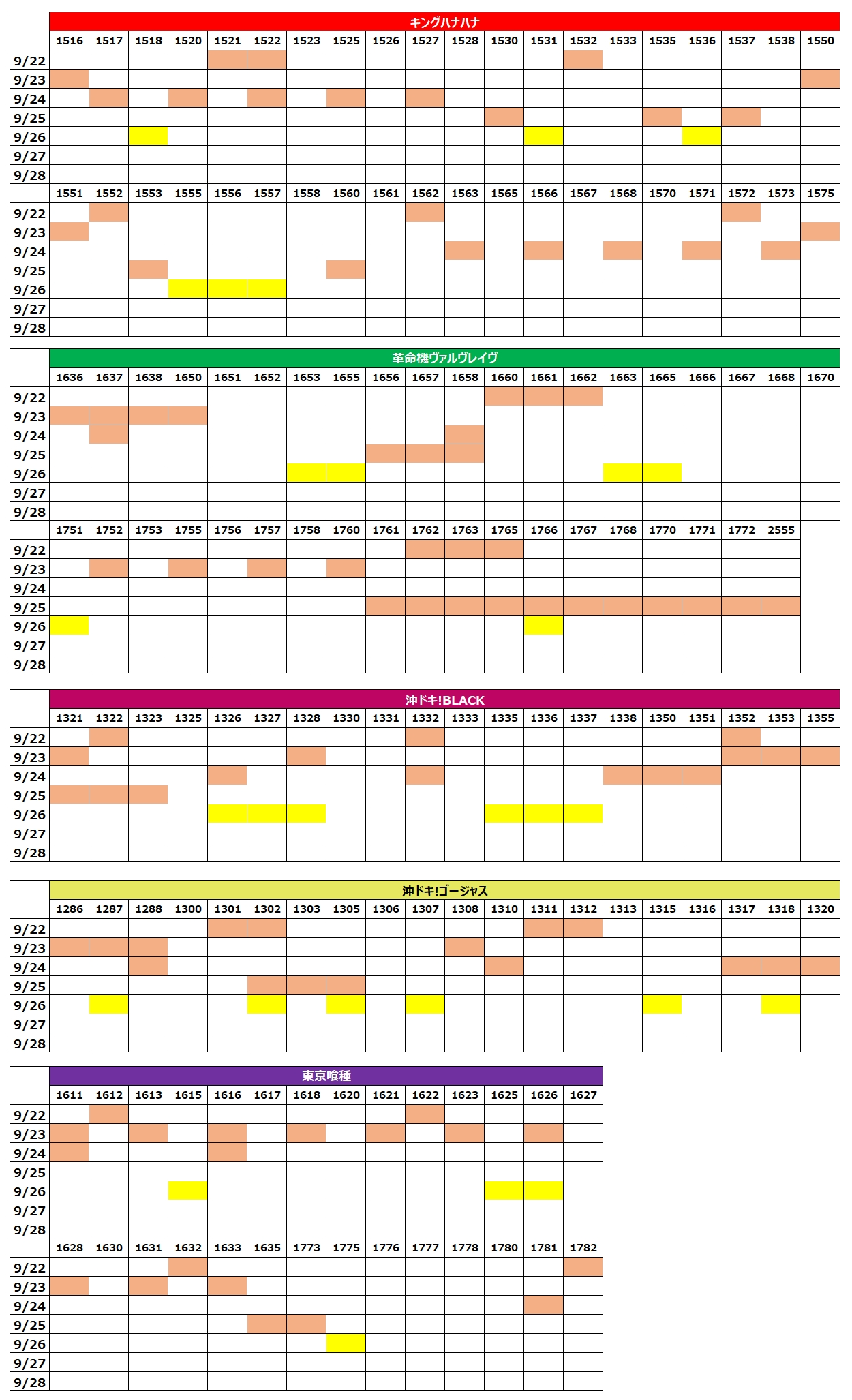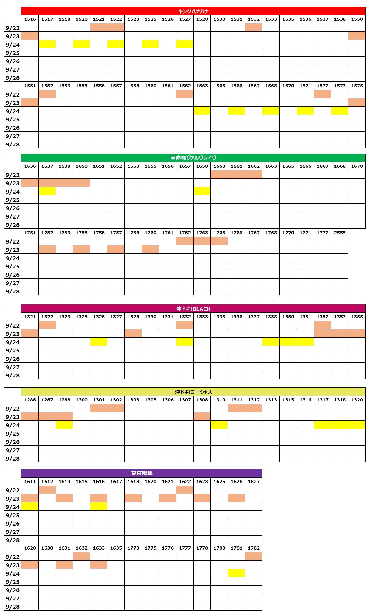 9/9のゾロ目日から6日間に渡って「マキシマムローテーション」が予定されているようです。