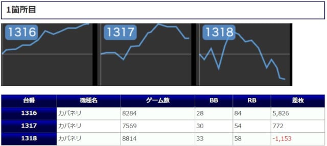 スロットは「アイジャグ」が数値的に弱い面がありましたが、「カバネリ」「ハナハナ鳳凰天翔」はがフル稼働の上で、しっかり出玉も確保しており、⑤⑥が意識されていたことが判ります。